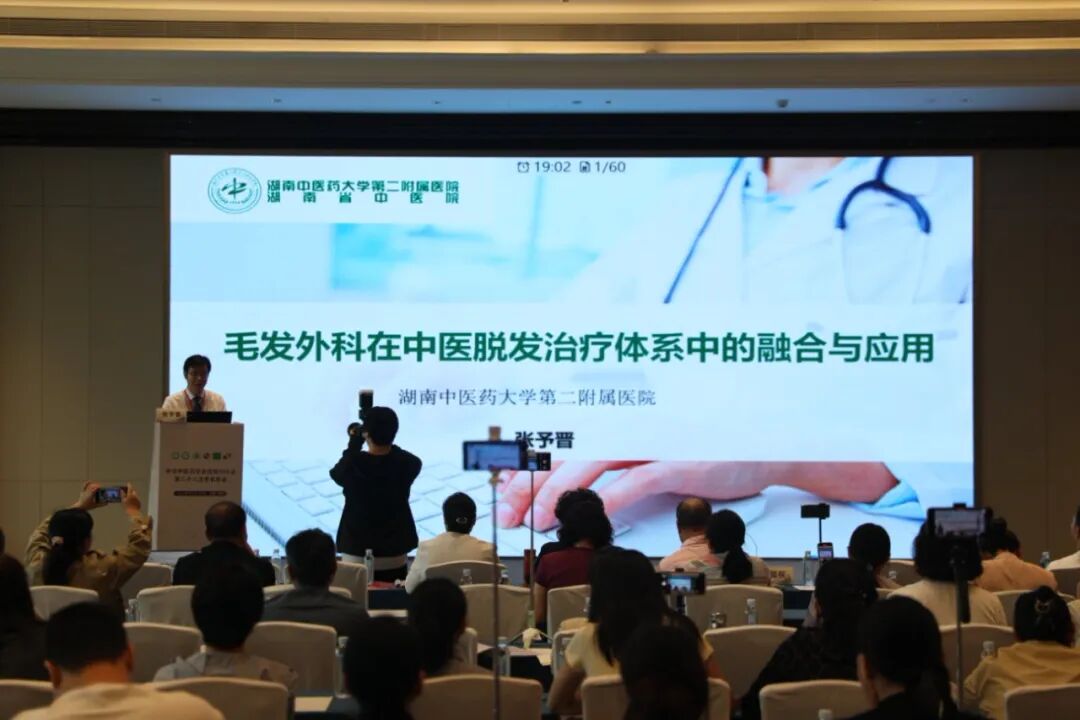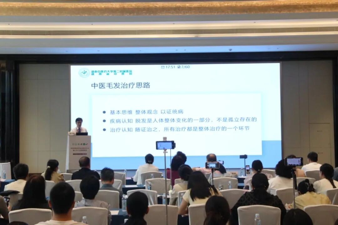 9月20日09:20 - 09:40,重庆厅(分会场1)中,湖南中医药大学第二附属医院的张予晋教授,分享了《毛发外科在中医脱发治疗体系中的融合与应用》。张予晋教授指出,中医毛发治疗需要秉持整体观念,以证统病,认识到脱发是人体整体变化的一部分,并非孤立存在,所有治疗都应遵循随证治之的原则,是整体治疗的一个环节。